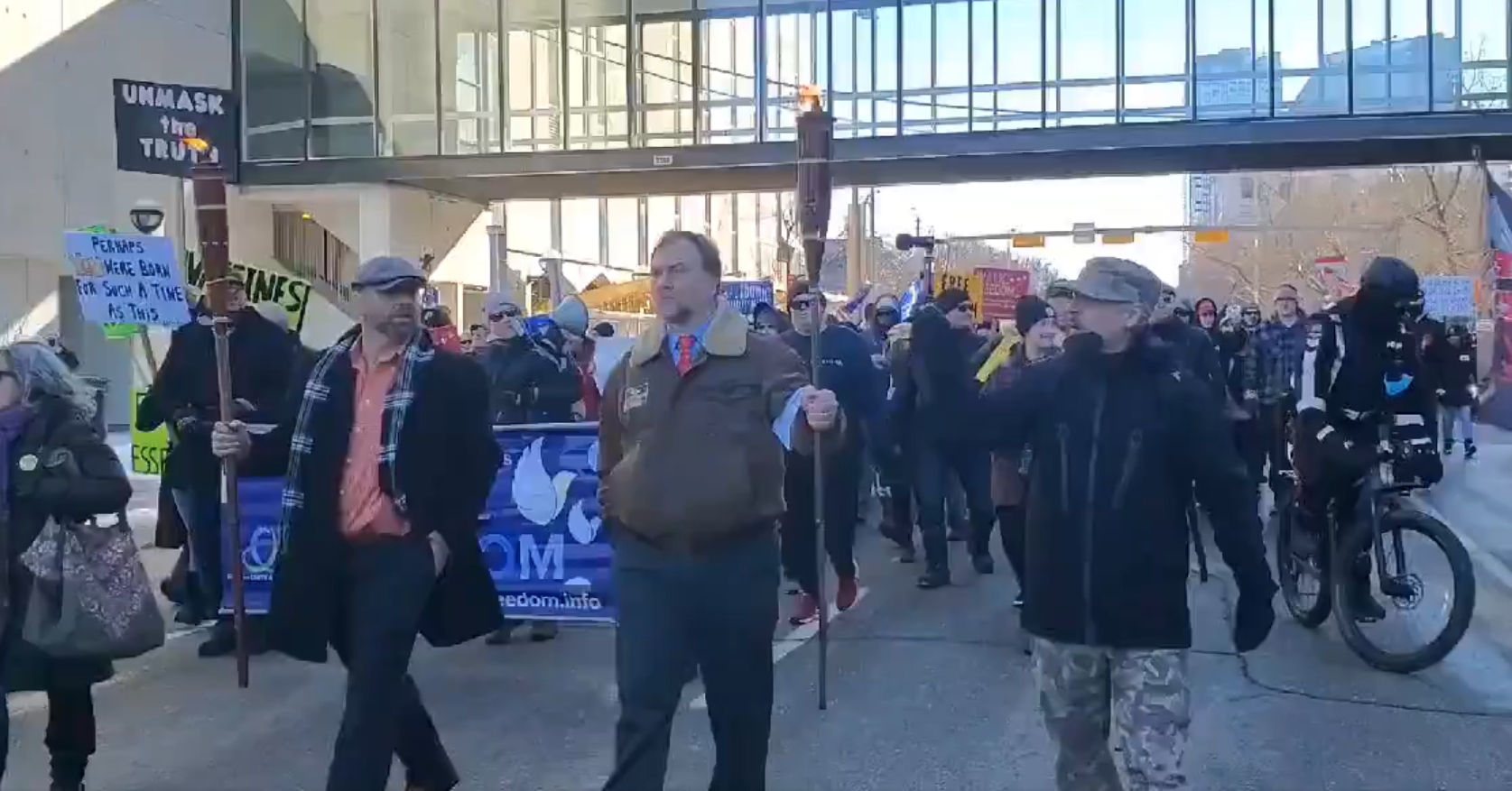 Tiki torches, Trump flags, no masks: anti-lockdown protesters march in downtown Calgary