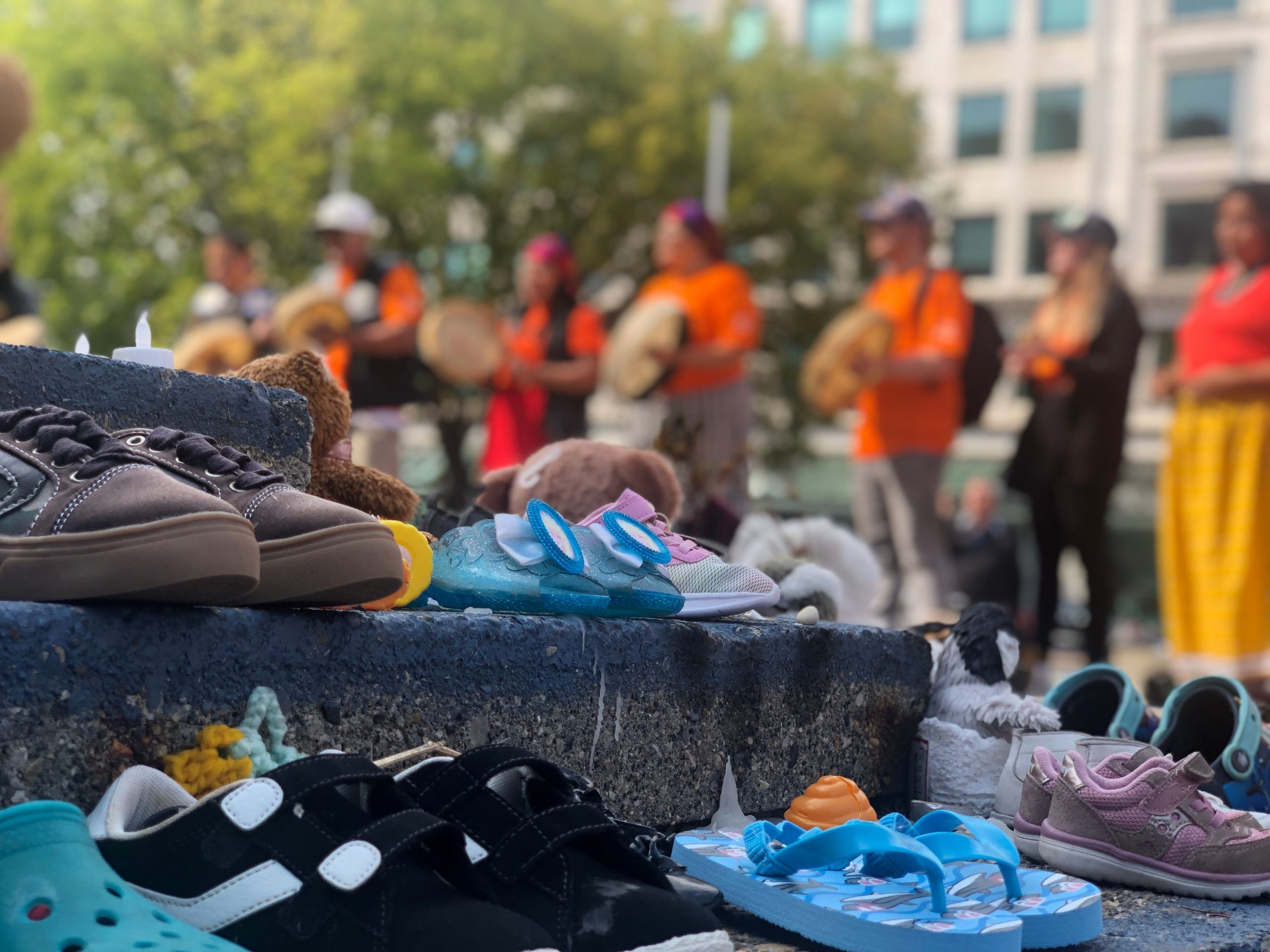 Indigenous Elders bless residential school memorial as city plans to remove shoes